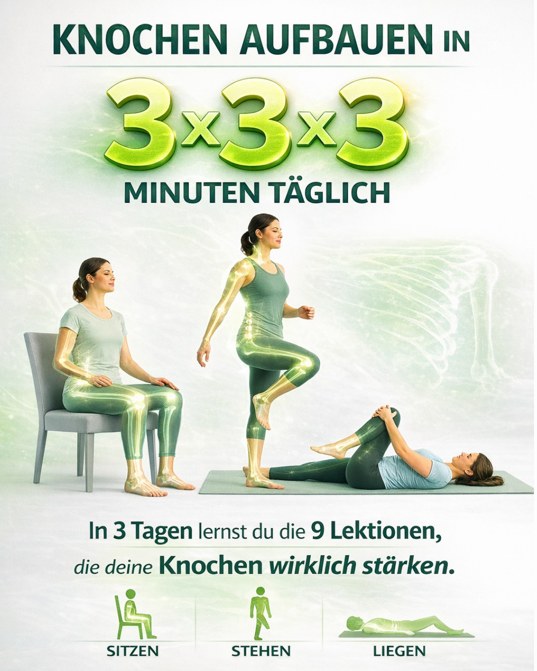 Damit du mit 3 × 3 Minuten täglich Bewegungen nutzt, die in den Knochen wirklich ankommen.